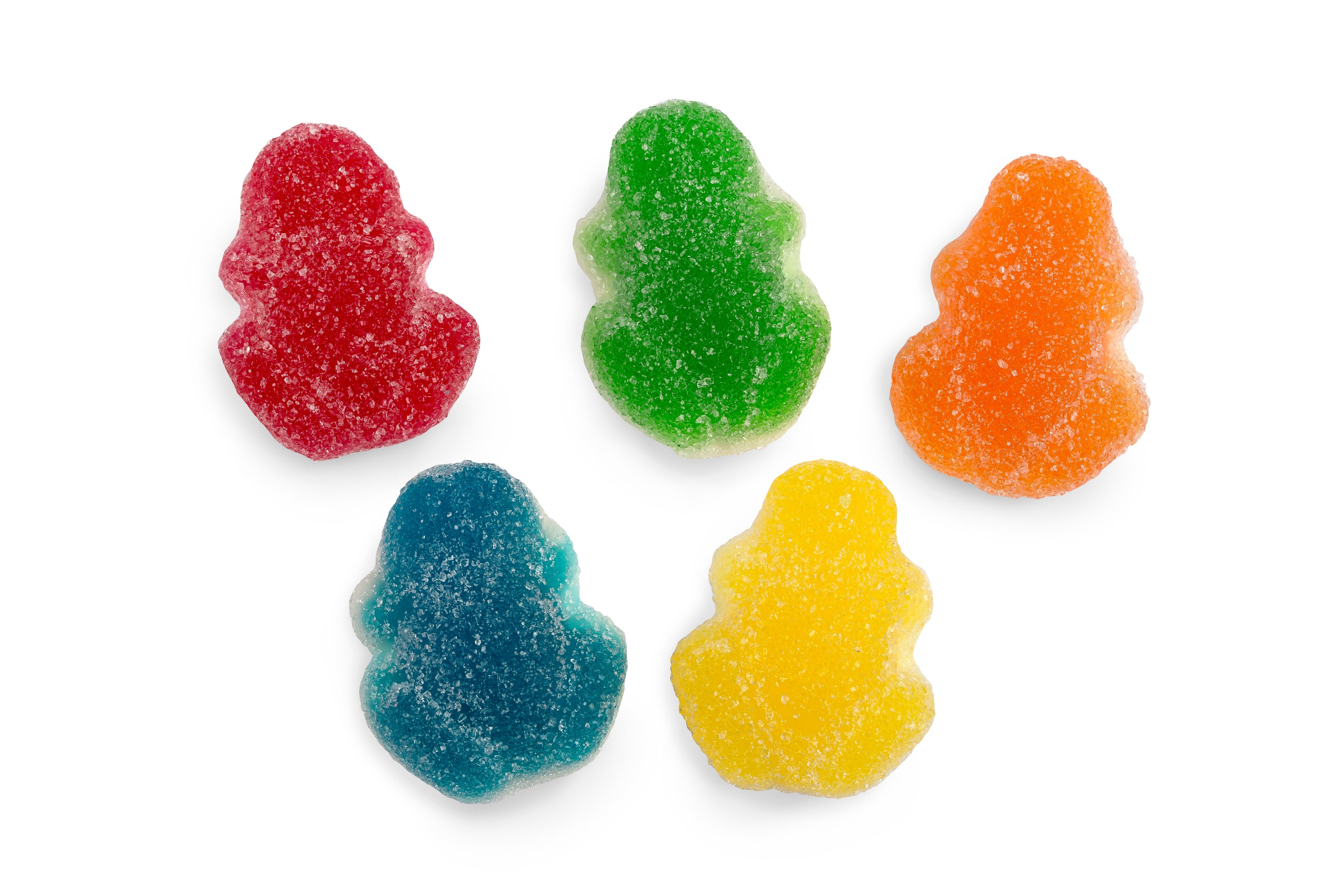 Chewy, frog-shaped sweets in a mix of bright colours with a crunchy sugar coating. They have a fruity flavour with...
